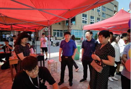 党总支书记李建伟、副书记杨向宇向员工发放资料,