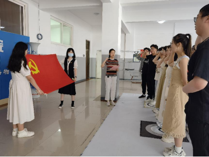 时时重温初心、感悟初心才能更好地践行初心。在鲜红的党旗面前,全体党员高举右拳,庄严宣誓,重温铿锵有力的入党誓言,展现新时代青年朝气蓬勃的精神面貌和立志报国的拳拳之心。