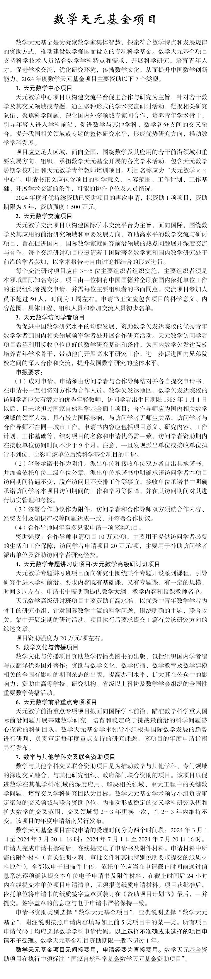 数学天元基金项目说明