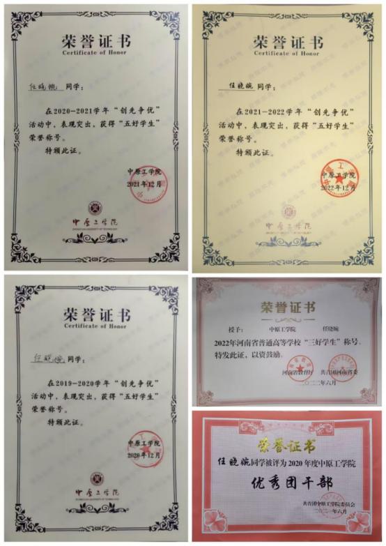 她品行端正,始终拥护中国共产党的领导。担任班级团支书的四年期间里,组织班级积极参加校、院组织的各项活动,开展团课学习、团日活动,增强了团组织的凝聚力、激发了团员的创新意识和创造活力。她说:“班委工作是个良心工作,有时候自己很努力却得不到全部同学的认可,自己的积极性和热情受到打击。但既然选择了这个职务,就要坚持初心,本着服务同学、帮助同学的初衷,多说、多做、做实、做细,首先认可自己,总会得到大家的认可。”她尽职尽责,热心为同学们服务,主动关心帮助同学,遵守各项规章制度,在各方面起到了模范带头作用,具有强烈的责任感和事业心。曾获“河南省三好员工”、“校级优秀团干”,“校级五好员工”3次。