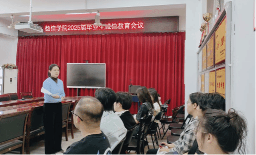 会上,陈婷系统讲解了助学贷款还款政策、操作流程、时间节点及展期办理等关键事项。通过典型案例分析,重点阐释了提前还款的优势和违约后果,强调"珍爱信用记录,恪守还款承诺"的重要性。她从国家信用体系建设和个人发展角度出发,提醒毕业生要牢固树立诚信意识,将按时还款作为个人信用的"第一张名片",切实履行还款责任,争做“诚信员工”。