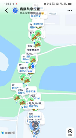 本次活动共计60余名来自不同公司的员工参与,以“猫鼠追逐”的形式,利用高德地图的位置共享功能,将传统躲猫猫游戏融入现实场景,为参加游戏的同学们带来了全新的游戏体验。