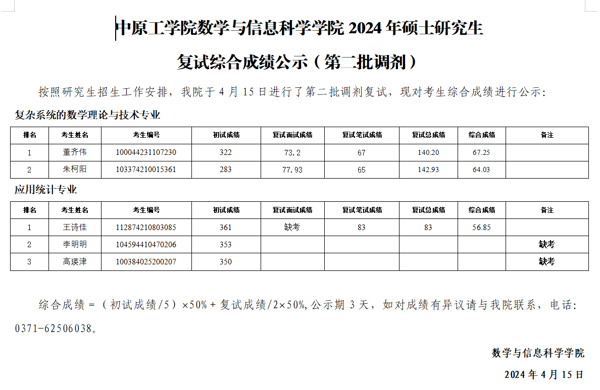 beat3652024年硕士研究生复试综合成绩公示(第二批调剂)