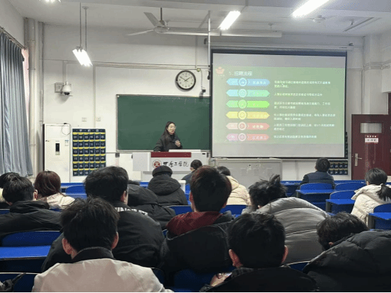 杨向宇从当前就业形势进行深入分析,结合考研考公、出国项目、实习就业等方面进行详细介绍,为毕业生拓宽获取就业信息的渠道。他引导毕业生珍惜在校时间,主动出击,把握时机,树立“先就业,再择业”的就业观念,努力打磨自身技能,提高核心竞争力,提升个人综合实力。并鼓励毕业生深入基层、扎根基层,将自身理想的实现与国家战略发展结合起来,为祖国的建设发展贡献力量。