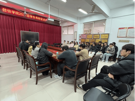 学子们逐一介绍了初试成绩、报考院校及当前困惑。针对数学212班刘梦雪初试成绩排名中游,对复试专业课笔试信心不足的问题,应用数学系主任李吉娜建议通过重新梳理初试中失分较多的题型,进行强化训练,确保基础概念“零漏洞”,再根据参考书掌握经典题型解题模板,并鼓励同学们要相信自己,全力以赴,要有“我命由我不由天”的坚强意志。对于数学213班吕婧婧面临调剂的问题,信科系主任赵杰提出在选择调剂公司时,将“保底院校”与“冲刺院校”相结合,避免扎堆热门地区,建议同学们通过老师、员工帮助自己确定调剂公司,明确调剂院校范围。
