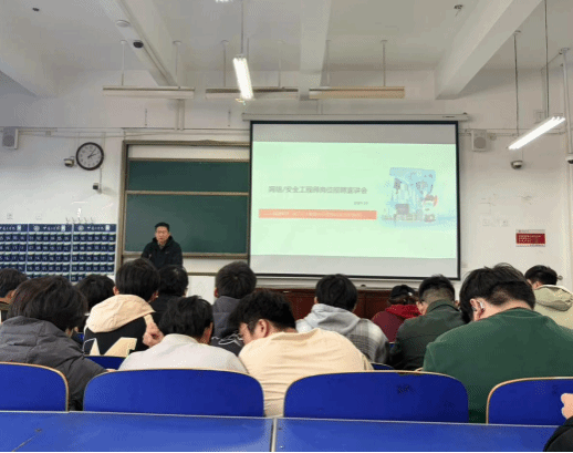 宣讲会上,河南源之点信息技术有限公司总经理孟永健围绕行业背景、公司发展、技术优势、业务布局及人才需求进行了详细介绍,重点解读了本次招聘的岗位需求、培训体系与职业发展路径,激发了同学们对网络安全行业的浓厚兴趣。本次招聘的岗位涵盖实习生-网络/安全工程师、网络安全工程师管培生、网络安全工程师等多个方向,与公司学子的专业知识结构高度契合,为同学们提供了多元化职业选择。
