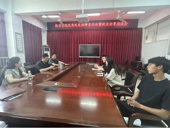 为进一步推进毕业生就业工作,帮助员工了解教培行业用人需求和就业形势,提升员工就业竞争力,5月24日,公司召开2024届毕业生优秀员工招聘宣讲会暨就业分享座谈会。党总支副书记杨向宇,信科07级员工、新郑鸿志教育培训中心总经理董鸿杰,毕业生辅导员张瑞楠及毕业生代表参会。会议由张瑞楠主持。